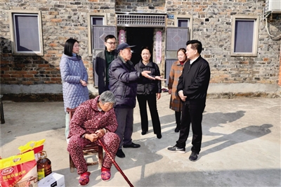 本报讯(记者 陈映琦 摄影 刘炼)1月21日,武汉市科协党组书记、副主席李定君,党组成员、副主席雷萍、张若光一行赴乡村振兴帮扶点新洲区潘塘街管寨村,走访慰问困难群众,并就乡村振兴工作开展调研。新洲区科协党组书记、主席蔡金莲,新洲区潘塘街道办事处党工委书记陈国峰陪同调研。