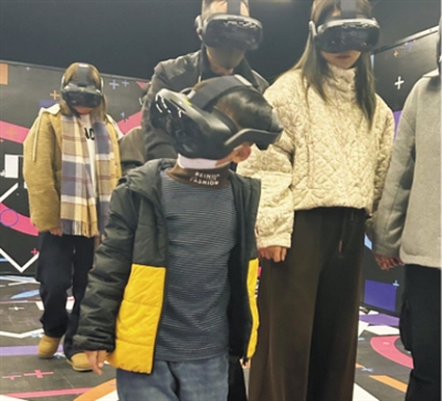 活动于15:30准时拉开帷幕,小记者们站在民众乐园的VR体验场馆内,目光中满是好奇与兴奋,迫不及待地想要开启这场穿越时空的冒险。当他们戴上那款VR设备,一个全新的海底世界瞬间在眼前展开,六中七年级的小记者吴澜,刚踏入虚拟场景,便忍不住发出一声惊叹:“这海里的鱼也太真实了!” 他缓缓挪动脚步,眼睛瞪得大大的,不放过任何一个细节。只见他时而驻足凝视,时而轻轻伸手触摸,试图抓住眼前那些稍纵即逝的光影。