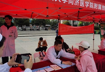 在活动现场,华中科技大学同济医学院附属协和医院展台前呈现一派忙碌景象。