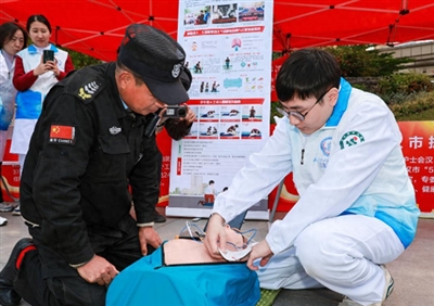 据介绍,在AED到达前,需要确定抢救者无反应、无脉搏、无呼吸,然后拨打急救电话,进行心肺复苏操作,坚持到AED到达。志愿者现场还带着观众进行心肺复苏急救演练,手把手纠正动作,让知识化作实操本领,助力更多人在关键时刻能成为生命的守护者。